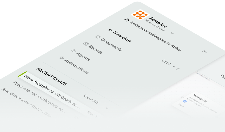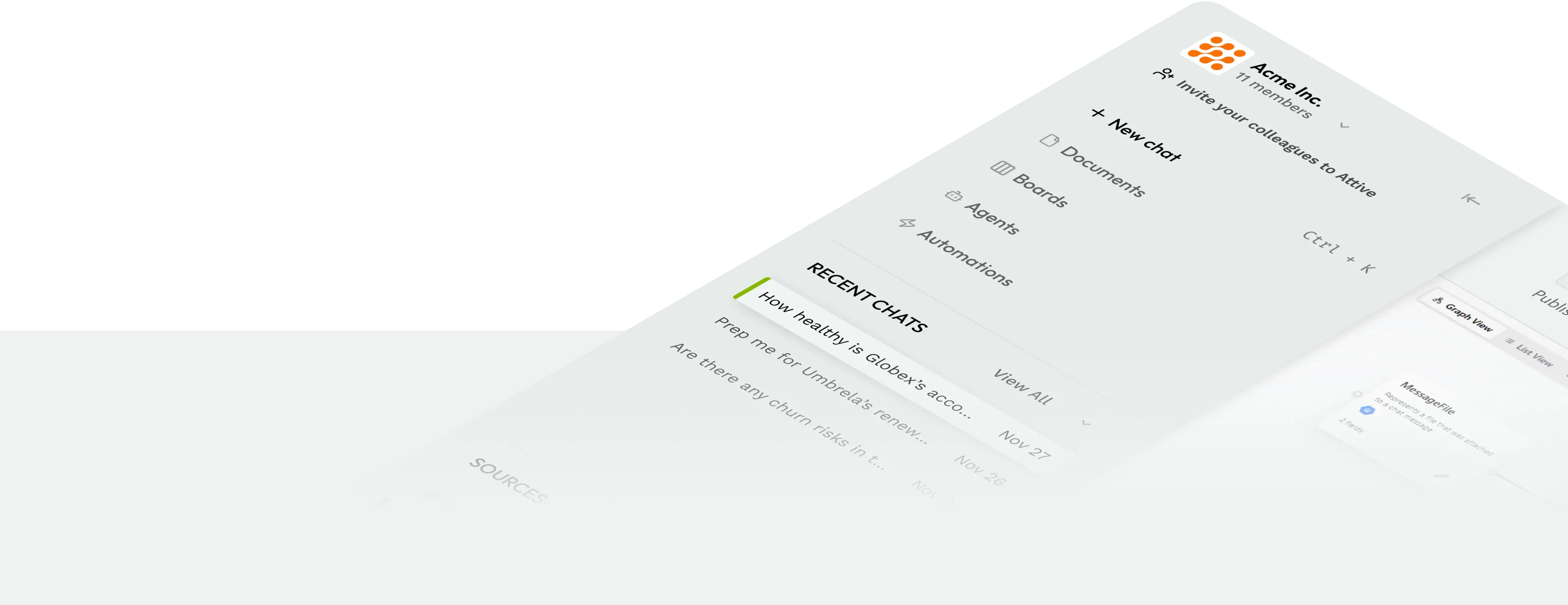 Attive isn't just a layer of AI—it’s a dedicated workspace designed to turn your scattered knowledge and live data into your team's greatest competitive advantage.
